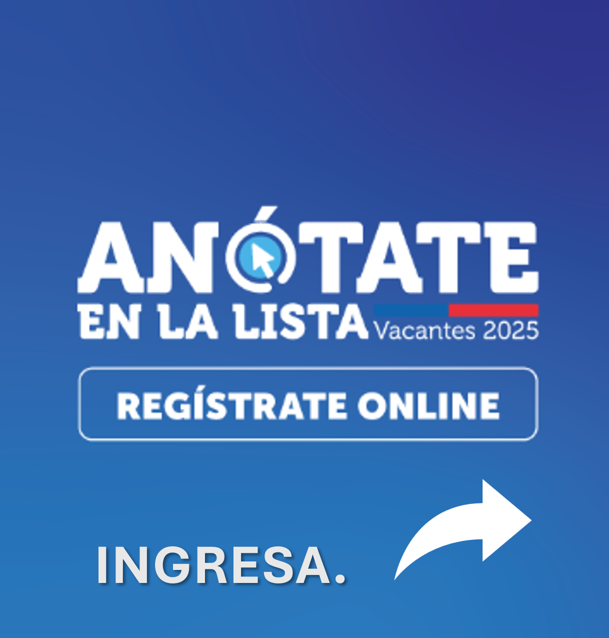 Para ser el proceso mas expedito, debes ingresar al sitio https://www.sistemadeadmisionescolar.cl/,  o en su efecto haz click el la imagen de la derecha (ANOTATE EN LA LISTA), en donde si no tienes cuenta deberas registrarse.( ver pasos indicados a continuación).